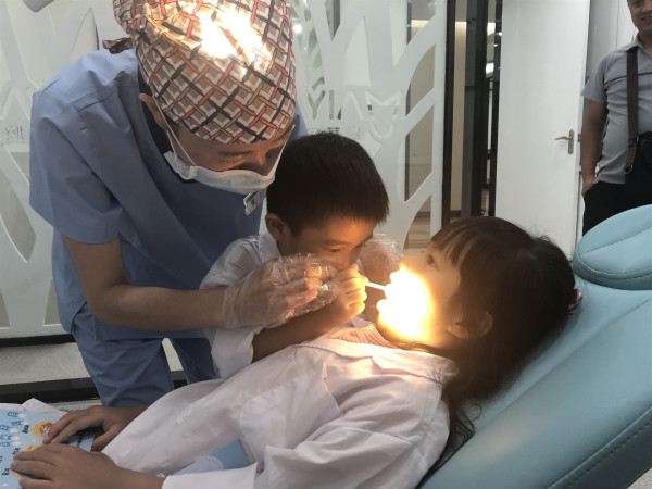 小朋友们医患关系互换,观察牙齿的动作有模有样