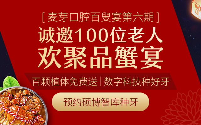 麦芽第六期种牙百叟宴,现开启全城邀约。如果你也有缺牙问题,或对种植牙心存疑惑,欢迎来电咨询报名,现在报名,活动当天还可享受博士种植专家团一对一看诊!