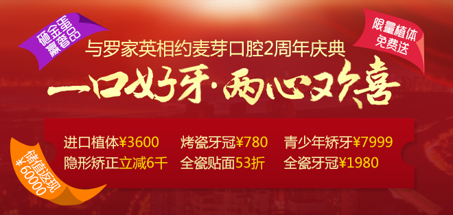 12月17日为麦芽口腔2周年感恩庆典,诚邀有美齿、种牙需求的朋友一同参与,届时不仅有教授及博士领衔的国际专家团队,为您量身定制美齿方案。庆典当日消费每满5000元即可参与砸金蛋一次,礼品包括iphone8、黄金、空调、冰箱、电视、洗衣机等奢豪大奖!同时还有超值储值优惠,最高可享6折优惠。现场还将送出惊喜大奖。12月17日,与喜剧大师罗家英相约麦芽口腔两周年庆典,缺牙及牙齿不齐的市民赶快报名参加吧!报名热线:0755-8233 9968。