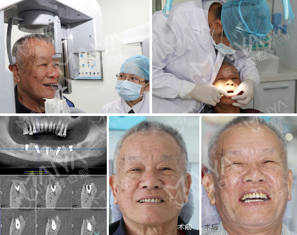 深圳老一辈的拓荒牛老李,半口假牙影响晚年的生活。麦芽口腔种植医师团队经过数字化CT权威分析,为达到更好的增加负重、增强咀嚼能力效果,对ALL-ON-4种植技术进行升级和改造,为其量身定制了“ALL-ON-5”种植方案,即All-on-4+即刻种植技术相融合,治疗后总共恢复24颗牙齿,术后老李高兴地说以后终于能想吃啥就吃啥了!