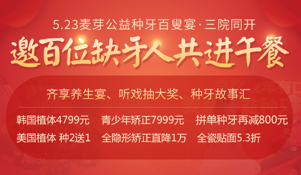 现报名参加5月23号麦芽百叟宴活动,可提前享受到一下种牙超值钜惠:
