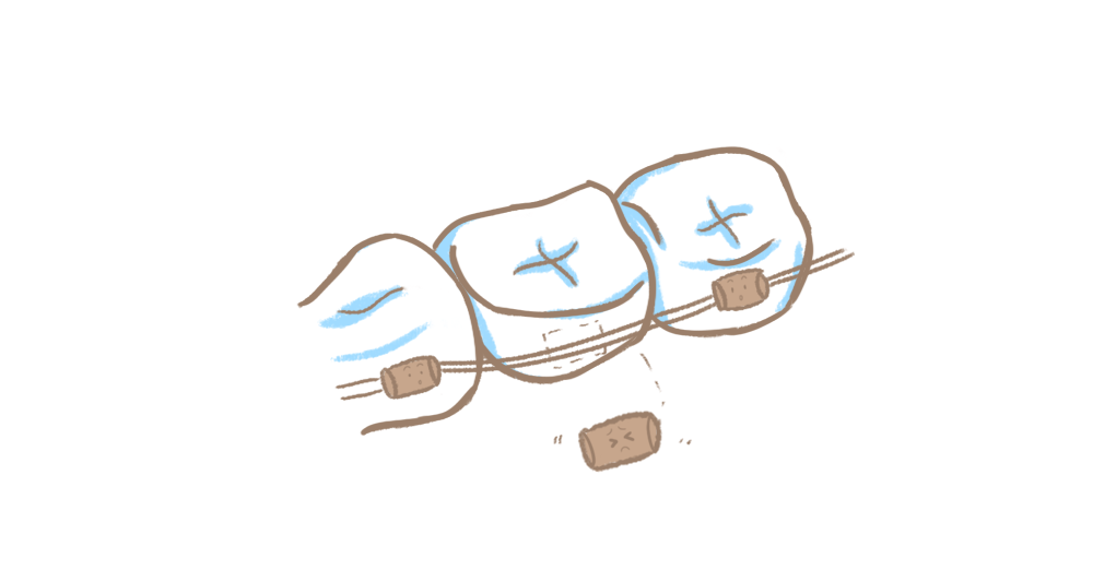 如果托槽确实掉了,就放进盒子里保管起来;如果还挂在钢丝上,可以利用正畸蜡或者口香糖固定下。