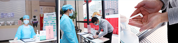 在麦芽口腔门诊入口设置有预检分诊区,所有进入医院的患者均经过严格的预检分诊后,方可进入诊区。预检分诊流程包括:手消毒、鞋消毒、测体温、指导正确佩戴口罩;并填写《新型冠状病毒肺炎流行病史问卷》;登记个人信息和接触史;有可疑症状或流行病史患者就地隔离,指引到隔离留观室,转诊至定点医院。