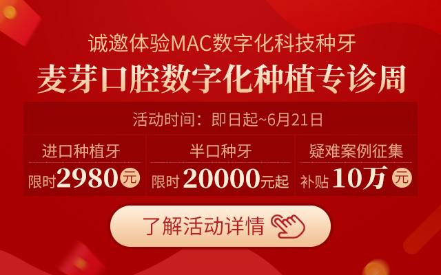 为了庆祝研讨会的成功举办,麦芽口腔即日起开启“数字化种植专诊周”,美国种植牙低至1980元/颗,半口种牙20000元起,来院即享590元数字化种植检查大礼包免费赠送,硕博专家1对1看诊,机会难得,缺牙市民赶快预约吧!预约电话:8233 9968。