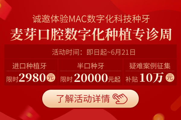 为了让本次研讨会的最新成果更多地应用于临床,研讨会期间,麦芽口腔启动数字化种植专诊周,整合口腔种植领域的博硕名家,如果您正在受长期牙齿缺失、骨量不足、半口无牙、全口无牙等问题所扰,可预约来院咨询种牙专家大咖,优享最新数字化种牙技术,并尊享半口种牙2万起、NOBEL半口种植牙6折等优惠。预约热线:0755-82339968!