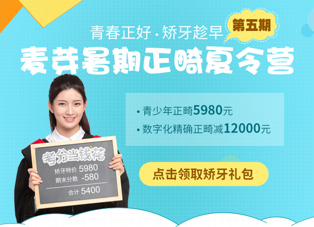 为了让更多歪牙患者享受正畸技术发展的成果,这个暑期,麦芽口腔特别推出正畸夏令营活动,现在预约即可享受数字化精确正畸最高减12000元,青少年正畸特价5980元等超值优惠,考分还可以当钱花,赶紧拨打美齿热线:8233 9968预约吧!!