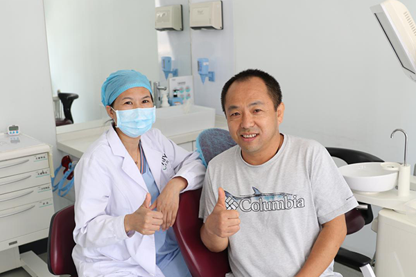 “松动牙后来痛得不行了才去拔啊,吃饭也不舒服,我想着拔完省事,拔了之后也没管它,反正用另一边吃东西也是可以的嘛!”生性爽朗的刘洪军,聊起缺牙经历直言不讳,“可没想到这一拔后面的事儿还不少,因为长期只用右边牙吃饭,左边的牙齿基本废掉了,不用就会坏啊,松动的牙旁边的那几颗牙齿后来陆续都掉了,照镜子发现脸也越来越不对称,再这么下去确实也不是个事!”虽说还能用单侧牙吃东西,但想着以后牙齿越掉越多,脸越来越歪,刘洪军终于还是把种植牙提上了日程。
