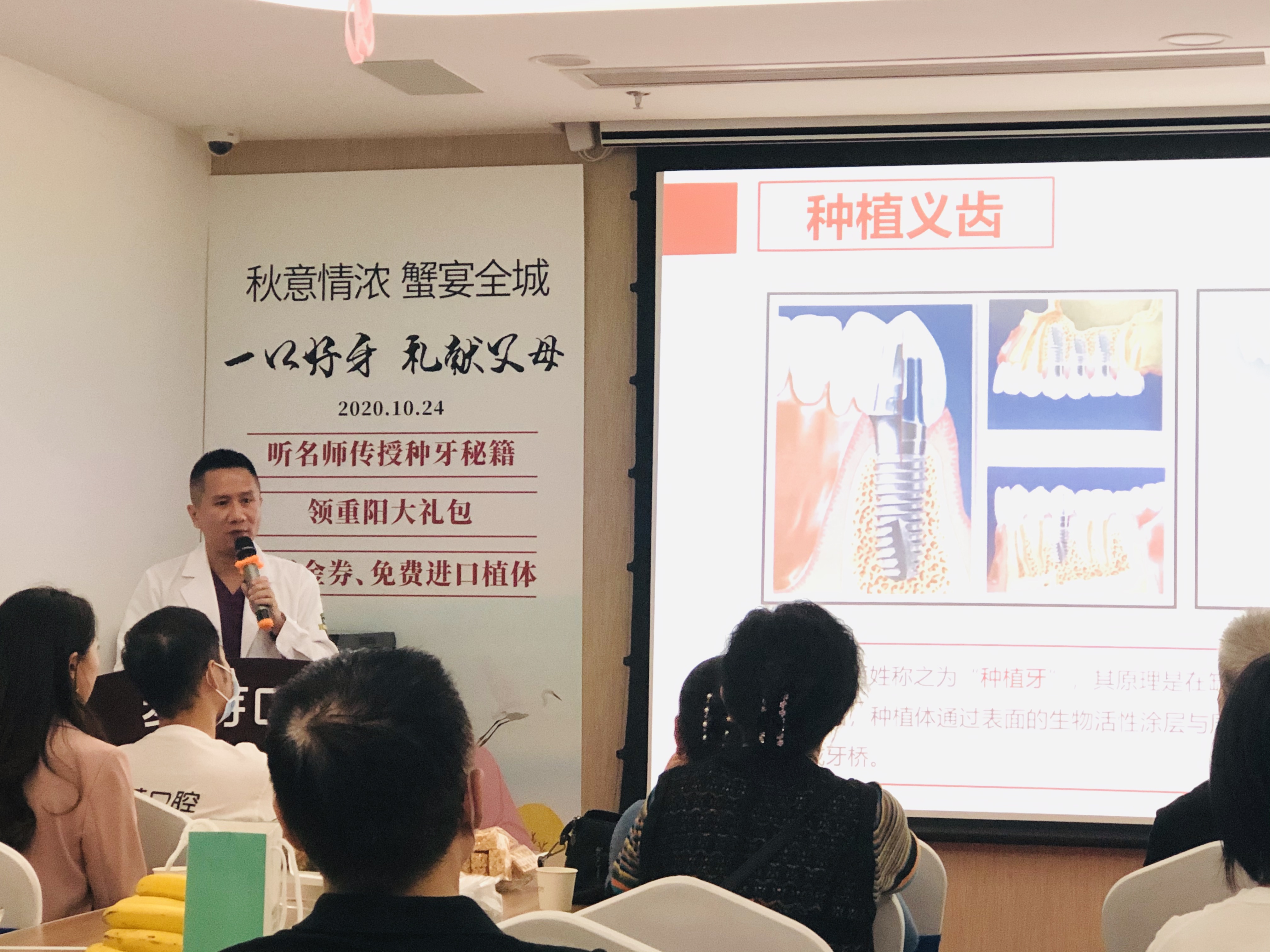 为了帮助更多中老年朋友解决缺牙问题,10月24日,麦芽口腔重阳种植牙专场沙龙如期举行。麦芽口腔品牌连锁福田机构业务院长、原辽宁省武警总队医院少校军医李泓甫院长,德国法兰克福大学种植硕士徐冬贵、种牙经验丰富的“少壮派”牙医李朝红主任、种牙技术高超的毛贤主任以及青年骨干丁佳等多位种植大咖出席了本次活动。百余位缺牙朋友共聚一堂,听大咖交流种牙经验,品鲜美时令大闸蟹,享最实惠的种牙优惠,度过了美好而快乐的一天。