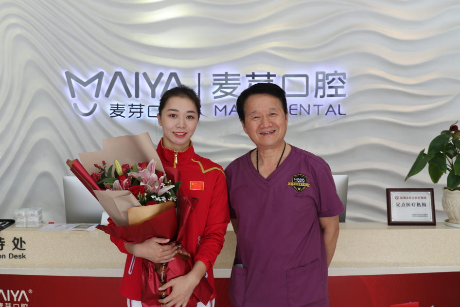 麦芽口腔品牌连锁总院长郑苍尚教授与杨伊琳合影