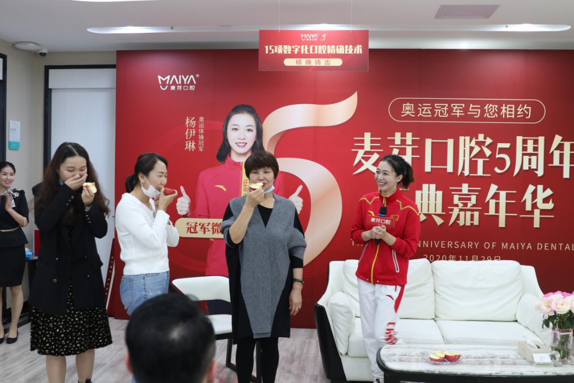 11月29日,奥运体操冠军杨伊琳亲临麦芽口腔5周年庆典日活动现场,与顾客互动,还聊起了她对口腔健康的观点和看法,她建议广大市民朋友平时多关注口腔健康,并定时到专业口腔机构检查、洁牙,养成良好的口腔保健习惯,祝福大家都能拥有一口健康、漂亮的牙齿!