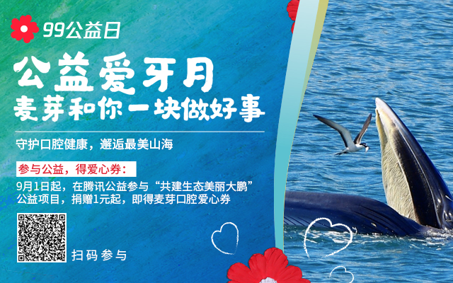金秋九月,麦芽口腔公益爱牙月同步开启。麦芽将携手腾讯公益,邀你一块做好事,从9月1日起,在腾讯公益平台关注“共建生态美丽大鹏”项目,捐助金额1元以上即可领取麦芽口腔爱心券。让我们一起传递爱心,守护口腔健康,邂逅最美山海!