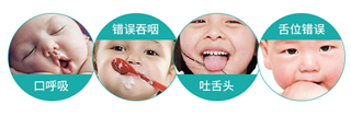 肌功能障碍是导致宝宝出现咬手、咬唇、吮手指、口呼吸、吐舌等不良口腔习惯的主要原因,不借助科学的矫正方法无法得到解决。