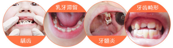 乳牙问题常见龋齿、多生牙、乳牙滞留、恒牙萌出障碍、牙周病、牙齿歪斜等,是造成恒牙咀嚼功能障碍、咬合不齐、牙齿畸形、颌面畸形等问题的主要原因。
